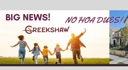 Sign up to receive the latest latest community news and updates from Creekshaw.
